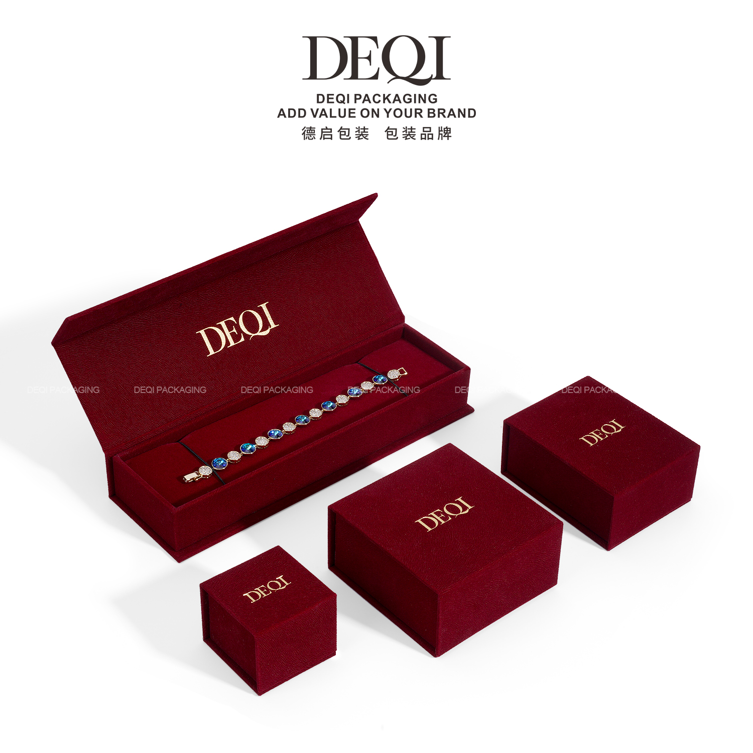 红色绒首饰盒套装